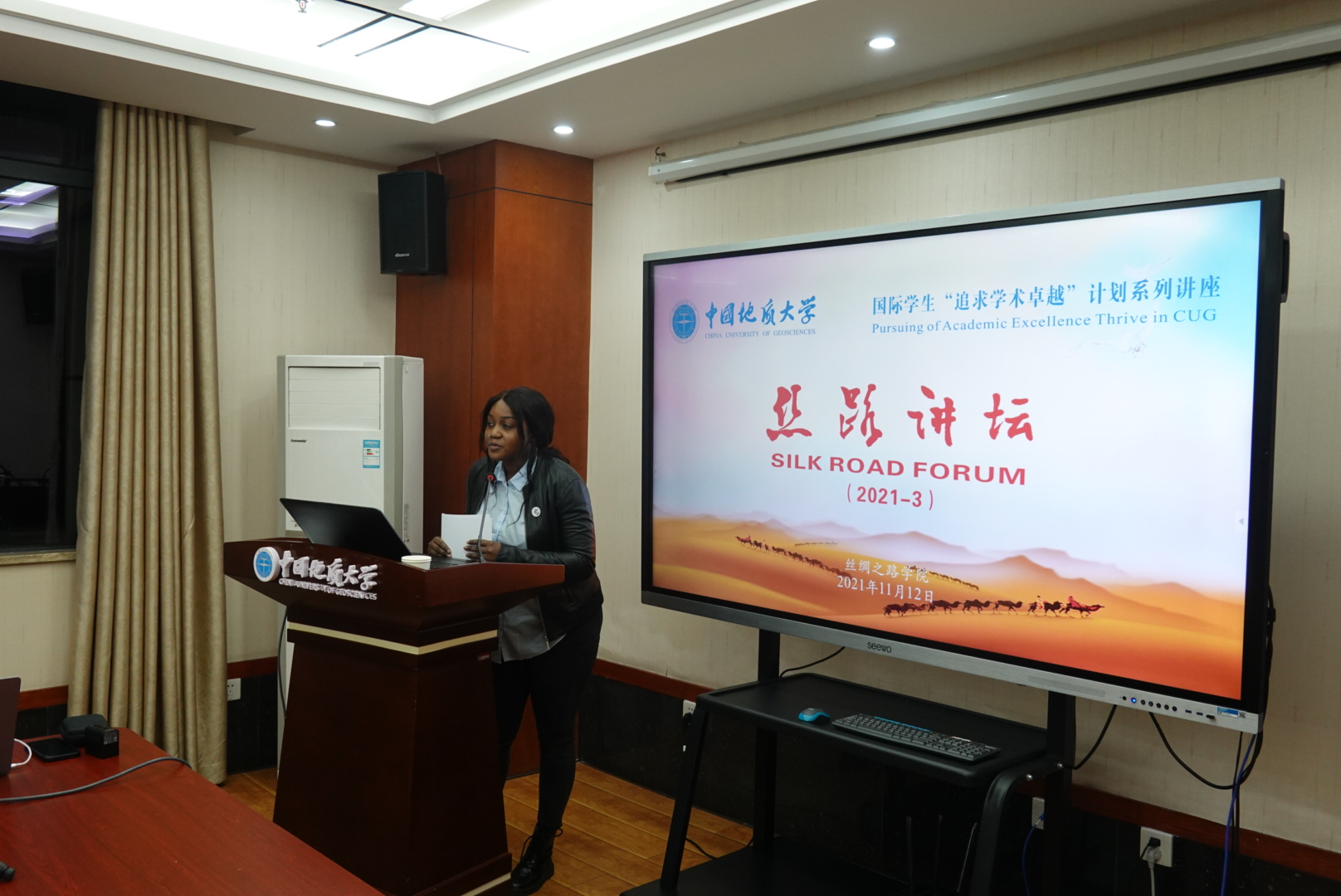 (通讯员 赵阳平 摄影 贾力 罗金刚)11月12日,湖北省优秀共产党员、教育部首批教师党支部书记“双带头人”工作室主持人、湖北省优秀基层教学组织负责人,资源公司谢丛姣教授做客《丝路讲坛》,做《What Makes a Student Become a Good Scientific Researcher》主题讲座,讲座由尼日尔籍博士研究生Zataou Hadjara(哈佳娜)主持。
