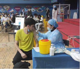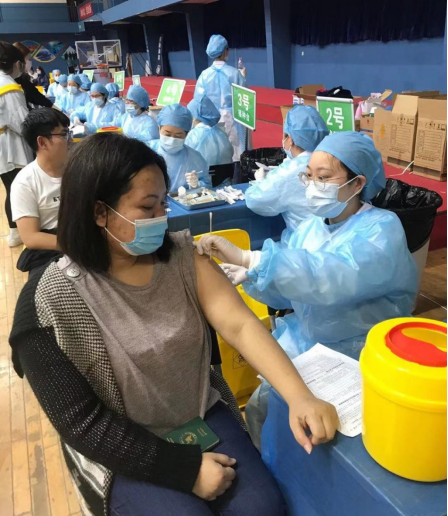 2021年3月28日下午3时,304am永利集团南望山校区的国际员工们依次有序进入西区体育馆,并在医护人员的安排下,按照流程接种新型冠状病毒疫苗(简称“新冠疫苗”)。
