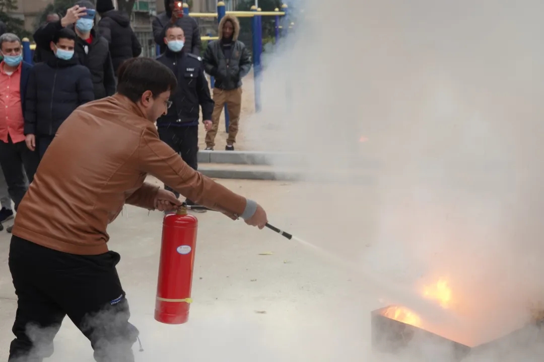 讲授如何正确使用灭火器此次消防逃生演习,校保卫处杨彪老师讲授了正确的逃生方式、校园报警电话及注意事项、如何正确使用灭火器等基本消防安全知识;还示范了灭火器使用,组织2020级新生分组使用干粉灭火器进行灭火操作,并详细点评和矫正同学们的操作方法,并进行了有奖消防知识竞答。