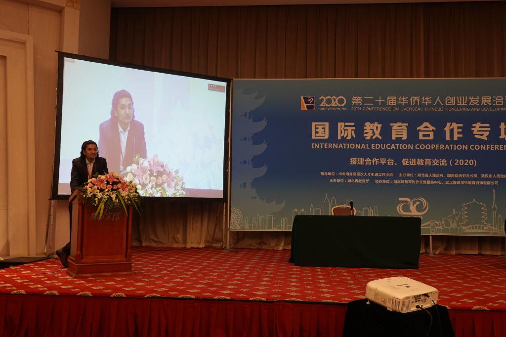 (通讯员 杨素 罗文旭)11月19日,由湖北省人民政府、国务院侨务办公室、武汉市人民政府主办,湖北省教育厅承办的2020第二十届华侨华人创业发展洽谈会-国际教育合作专场在东湖国际会议中心·南山乙所洪湖厅举行。来自中国、美国、英国、瑞士、泰国、德国、瑞士等多国教育界嘉宾以“线上+线下”模式参与会议。湖北省委教育工委副书记孔祥恩出席会议并致辞。