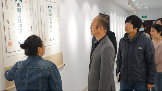 张亚伟经理一行对公司国际员工发表的高水平论文表示赞许,对公司大力开展国际员工学风建设和学术能力提升工程予以肯定和认同。在国际展厅,三位老师更是对职工的书法和纂刻作品大为赞赏,对公司为职工开设的中国文化学习和体验课程点赞。