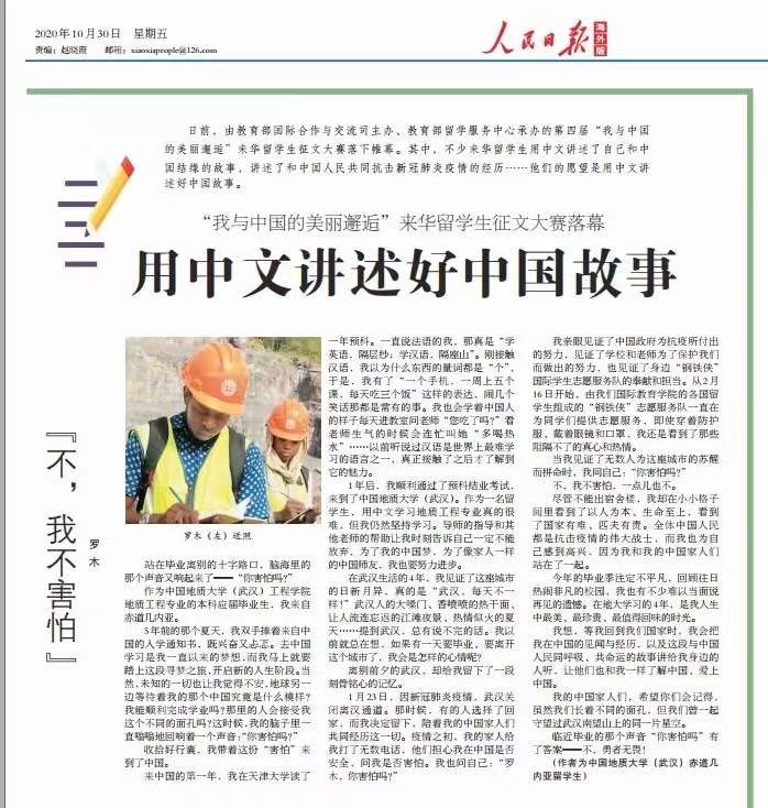 人民日报报道公司职工获奖文章——“我与中国的美丽邂逅”来华职工征文大赛
